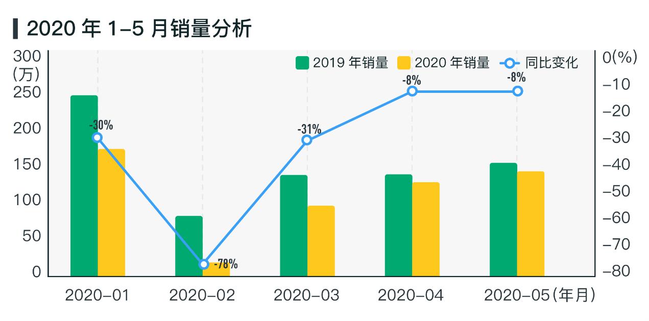 從3月-5月汽車銷量恢復趨勢看,消費者信心在不斷恢復,汽車銷售市場正逐步趨于好轉,銷量環比大幅上升,同比依然小幅度下滑,4月、5月已恢復至去年同期水平的92%。所以,從數據上看:上半年疫情對于中國車市是有一定的影響,但也是有限。