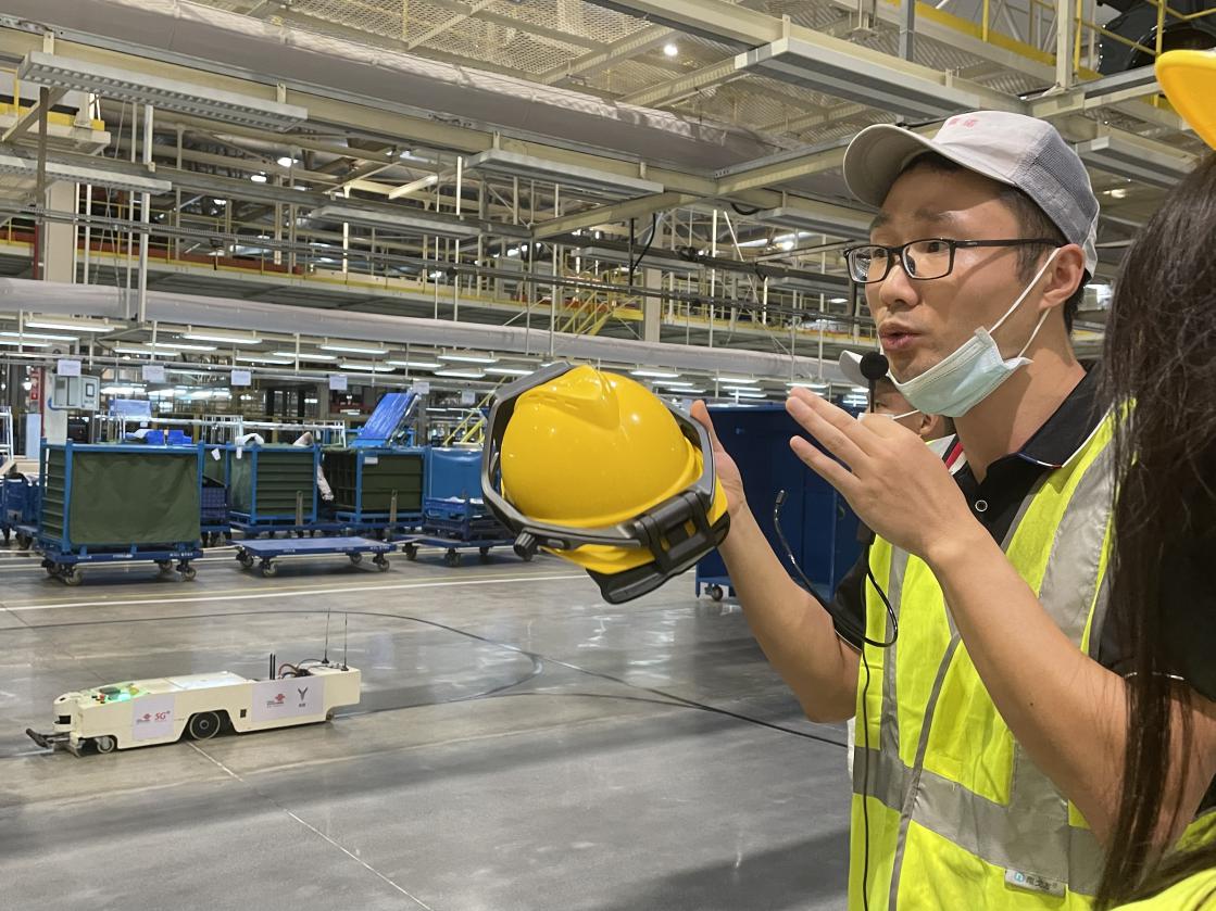 (工程師正在講解工廠內5G技術的應用 攝影 劉嵩)