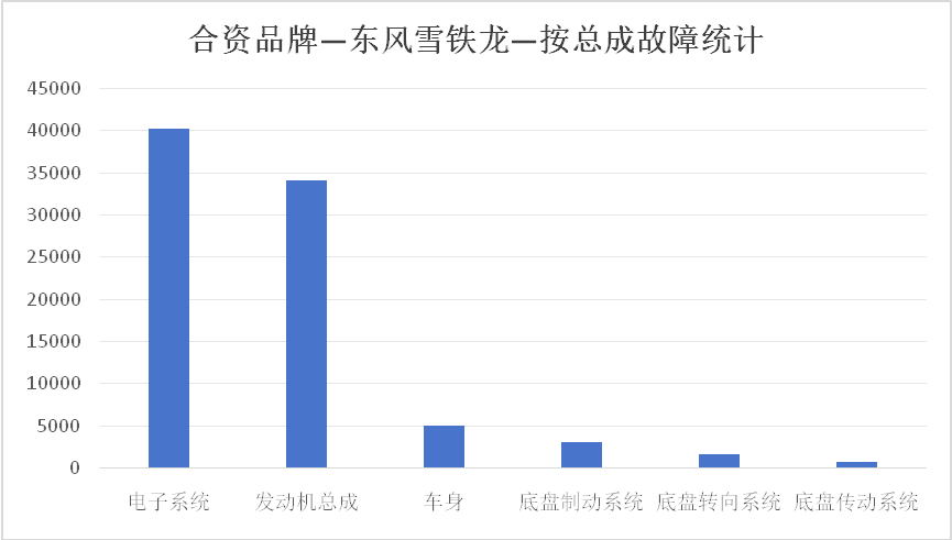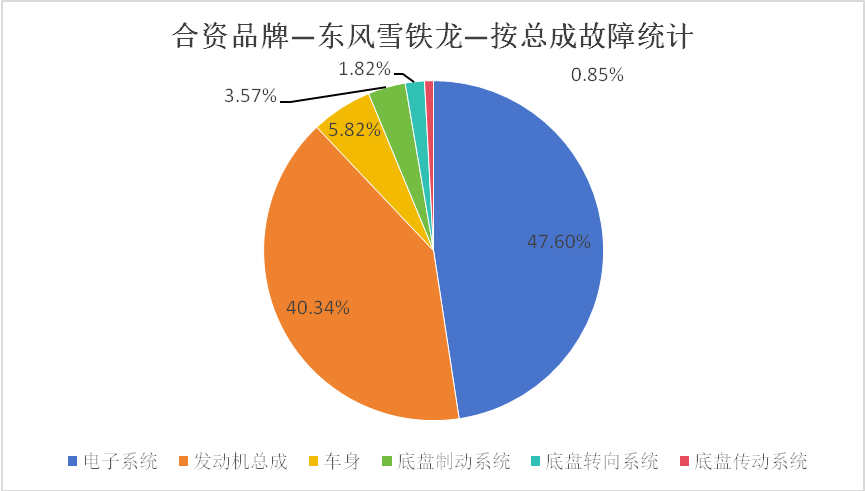 根據維修數據,東風雪鐵龍的電子系統和發動機總成故障表現在六個總成中的占比接近90%。由此可見,雖然該品牌的熱門產品底盤表現優秀,但繁多的電子系統故障和發動機總成故障較為影響用戶用車體驗。