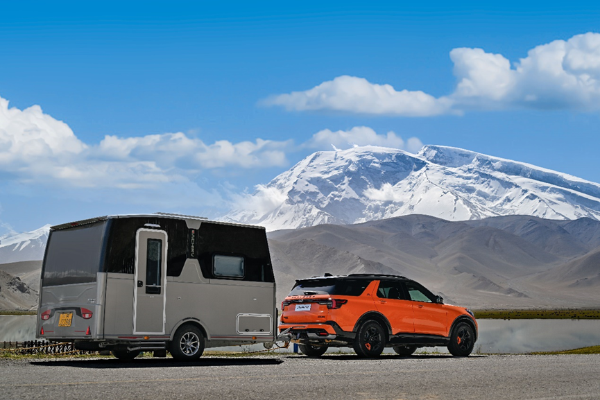 眾所周知,“死亡搖擺”是拖掛房車行駛最怕的場景,當拖掛車輛遇到轉彎、崎嶇、大風等情況,造成前后兩車的行進狀態出現偏差時,高頻率的左右搖擺容易造成車輛失控。探險者昆侖巔峰版配備的拖車搖擺控制系統,能通過車載傳感器及先進的算法,實時評估拖車的行進狀態,在拖車搖擺控制系統在探測到拖車有搖擺傾向時,通過及時調整發動機動力輸出和四輪制動力,保持車輛平穩。