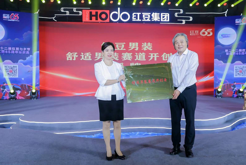由于對舒適男裝的深刻洞察、把握及實踐,紅豆股份紅豆男裝還被中國服裝協會授予“舒適男裝賽道開創者”稱號,中國服裝協會副主席周一奇在活動現場為紅豆集團常務副總裁、紅豆股份董事長戴敏君進行授牌。