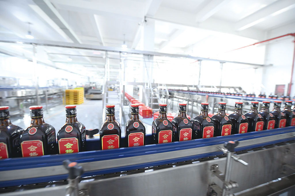 會稽山紹興酒股份有限公司的黃酒自動灌裝線。