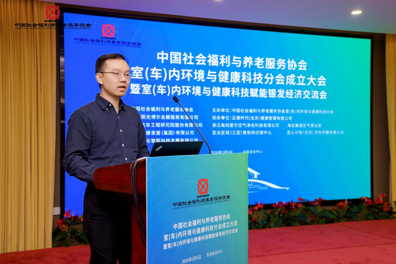 2月5日上午,中國社會福利與養老服務協會室(車)內環境與健康科技分會成立大會暨室(車)內環境與健康科技賦能銀發經濟交流會在北京會議中心召開。本次大會匯聚行業專家、企業代表及養老機構負責人,以“科技賦能健康,守護銀齡生活”為核心,搭建行業交流合作平臺,推動室(車)內環境與健康科技產業同銀發經濟深度融合。