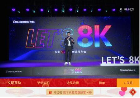 中國質(zhì)量新聞網(wǎng)訊(志 石)4月22日晚,長虹以“Let’s 8K”為主題,舉行了2020年長虹電視5G+8K全球發(fā)布會。這也是今年中國家電業(yè)首場跨國直播發(fā)布會。此次“云發(fā)布”在天貓、京東、蘇寧等多個平臺同步直播。