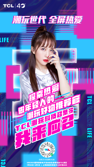 值得一提的是,本次UDE2021與往屆不同的是,UDE2021更注重與Z世代的深度互動,通過打造沉浸式的科技場景與廣大年輕人玩到一起,共同享受智慧科技帶來的無窮樂趣。這與TCL“潮玩世代,全屏熱愛”的展會主題也是不謀而合的,此次UDE,TCL就聯合了幾位潮玩大咖玩出了新花樣。