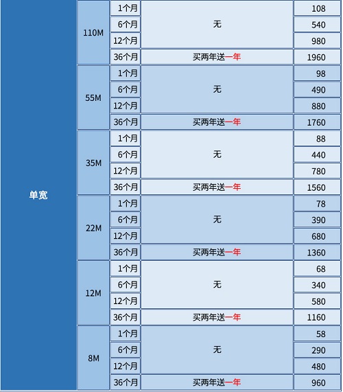 上圖為歌華有線官網“單寬”產品價目單(截圖日期:2017年8月1日)