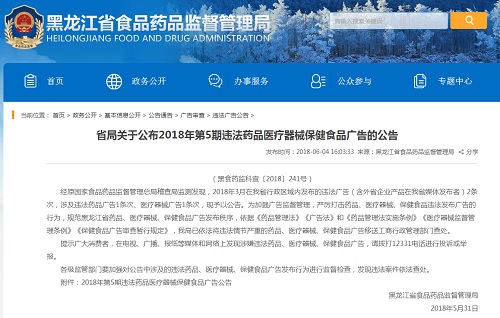 為加強(qiáng)廣告監(jiān)督管理,嚴(yán)厲打擊藥品、醫(yī)療器械、保健食品違法發(fā)布廣告的行為,規(guī)范黑龍江省藥品、醫(yī)療器械、保健食品廣告發(fā)布秩序,依據(jù)《藥品管理法》《廣告法》和《藥品管理法實(shí)施條例》《醫(yī)療器械監(jiān)督管理?xiàng)l例》《保健食品廣告審查暫行規(guī)定》,黑龍江省食品藥品監(jiān)督管理局已依法將違法情節(jié)嚴(yán)重的藥品、醫(yī)療器械、保健食品廣告移送工商行政管理部門查處。