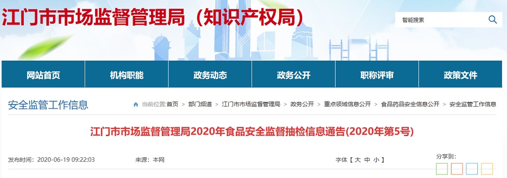 中國質量新聞網訊 2020年6月19日,江門市市場監督管理局網站發布2020年食品安全監督抽檢信息通告(2020年第5號)。據通告,江門市市場監督管理局近期組織開展日常食品安全監督抽檢,對全市范圍內餐飲環節經營的食用油、油脂及其制品、炒貨食品及堅果制品、酒類、調味品、糧食加工品、肉制品、蔬菜制品、食用農產品、餐飲食品等9大類食品進行抽檢,共抽檢313批次樣品,其中合格食品307批次,不合格食品6批次,合格率為98.09%。