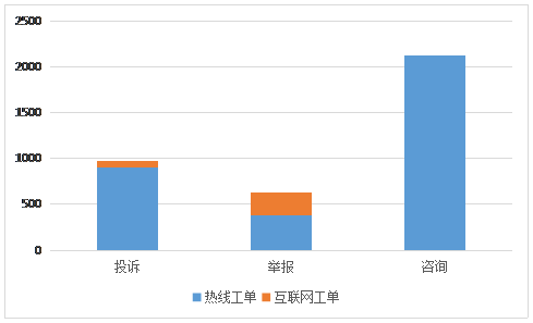 與上月相比,本月12315投訴舉報咨詢受理量增長27%。
