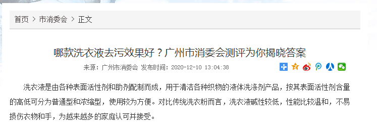 為了解洗衣液產品的質量狀況,為消費者提供相應的商品信息及購買指導,廣州市消委會開展了洗衣液商品比較試驗,委托廣州質量監督檢測研究院對商超和電商平臺上熱銷的12款洗衣液商品進行測試,測試結果僅對購買的樣品負責,不代表其同一批次或其他批次產品的質量狀況。