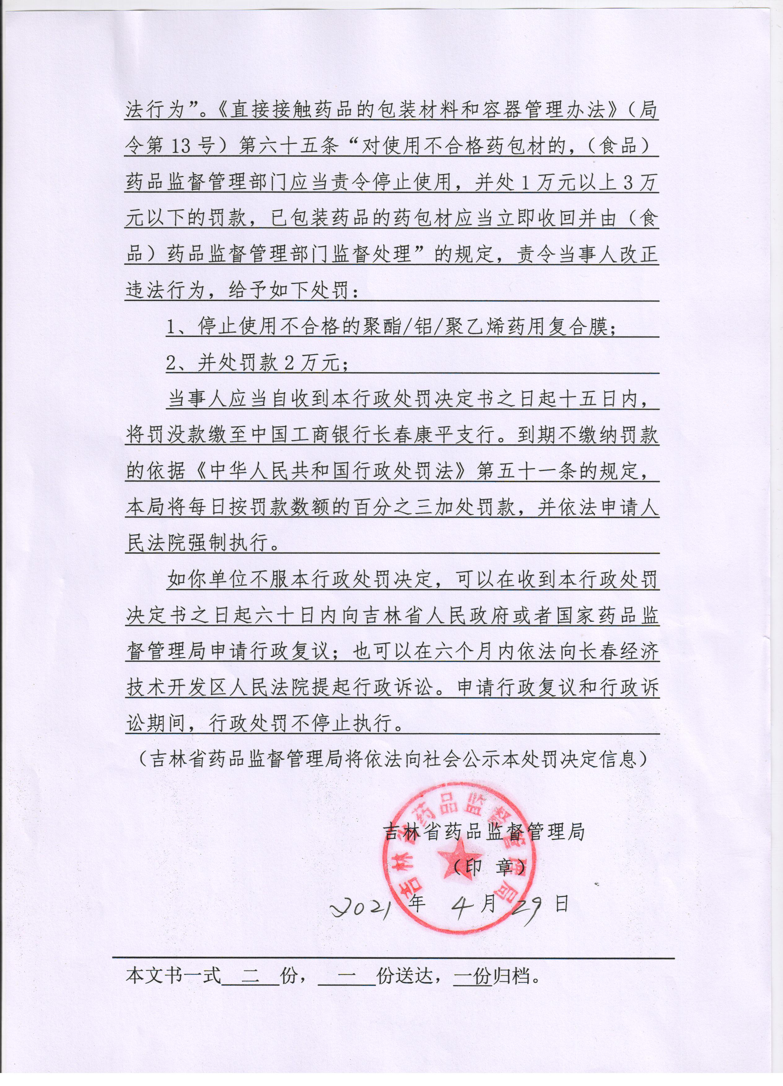 中國質量新聞網訊 2021年5月18日,吉林省藥品監督管理局發布關于吉林省東盟制藥有限公司涉嫌使用不合格聚酯/鋁/聚乙烯藥用復合膜(批號2003079)案的行政處罰決定書(吉藥監藥行罰【2021】LY1號)。