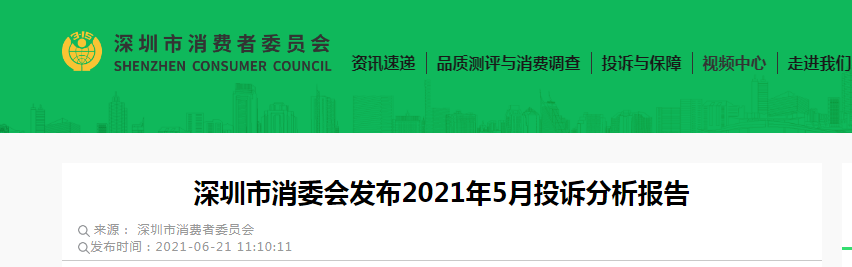 中國質量新聞網訊 近日,深圳市消委會發布2021年5月投訴分析報告,涉及航班取消航空公司未妥善處置、健身房延遲開業且虛假承諾等四大投訴熱點。