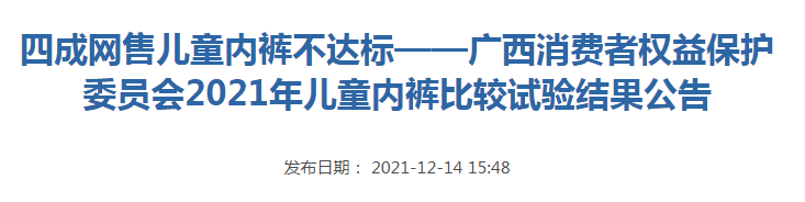 ——廣西消費者權益保護委員會2021年兒童內褲比較試驗結果公告
