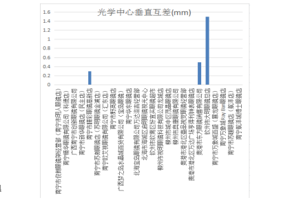 4.光學中心垂直互差。光學中心垂直互差是指兩鏡片光學中心高度的差值。國家標準是根據頂焦度值大小來確定光學中心垂直互差大小的,本次比較試驗的樣品光學中心垂直互差要求均在≤1.00mm,差值越接近零,表示產品質量越好。經檢驗,欽州市大明眼鏡總店的樣品光學中心垂直互差不符合國家標準。