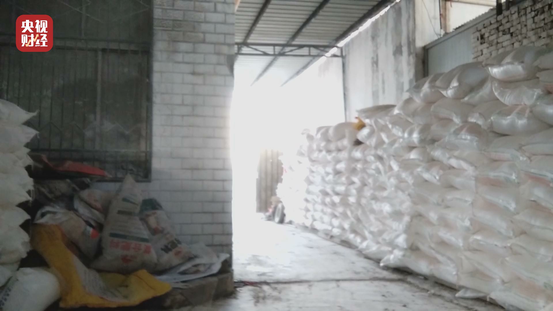 在一個狹長的過道擺滿了一袋袋淀粉,上面標(biāo)注著木薯淀粉。老板坦承,這就是他們生產(chǎn)紅薯粉條的原料。