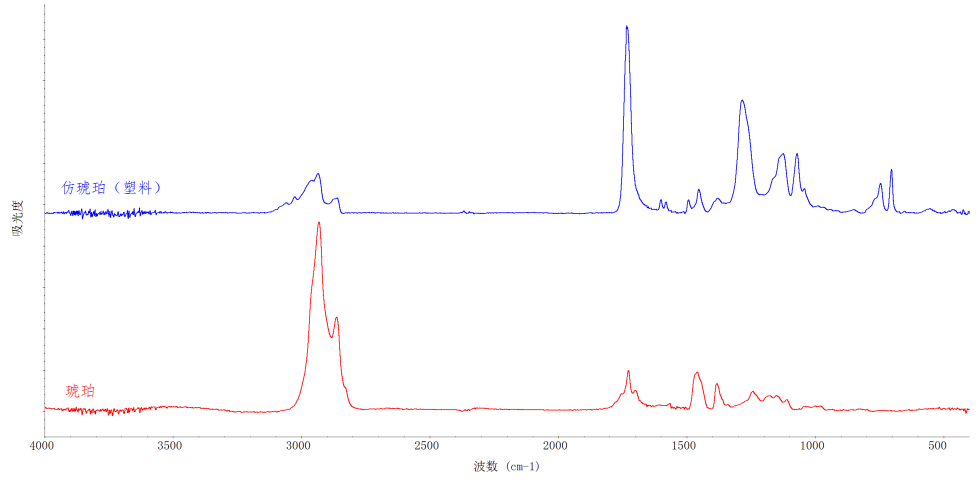 這是琥珀最有效的鑒別方法,但需要專業(yè)儀器及實(shí)驗(yàn)室譜學(xué)方法的綜合分析。琥珀擁有自己的特征紅外光譜,而仿制品由于成分不同,會(huì)顯示出多余的峰,仿制品無所遁形。