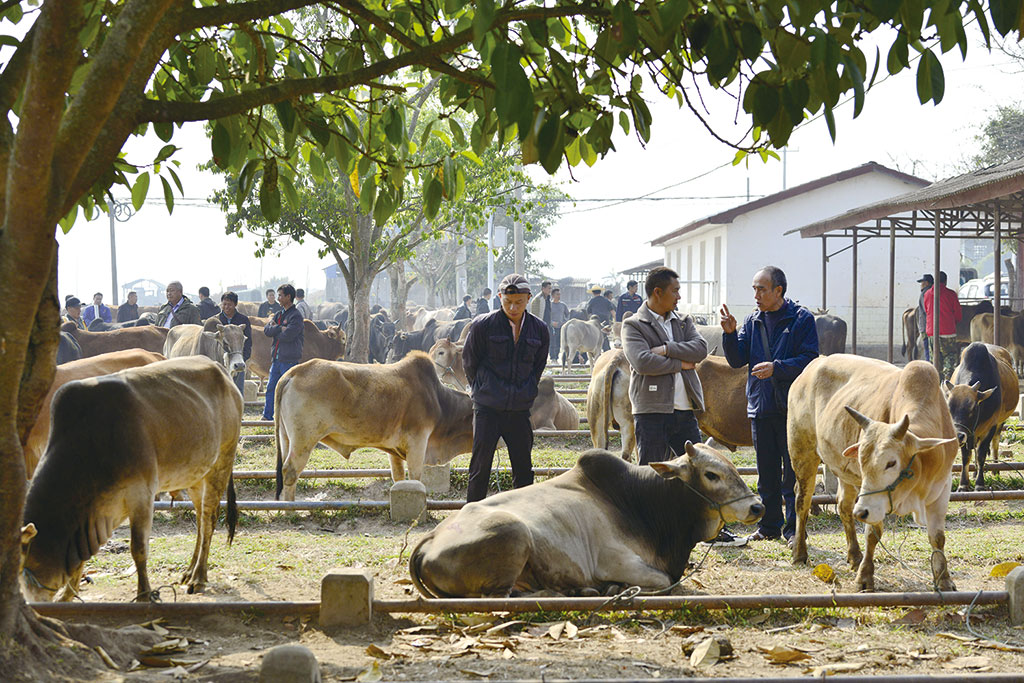 在云南省西雙版納傣族自治州勐海縣勐遮鎮曼燕大牲畜交易市場,人們在選牲畜。佐連江 攝