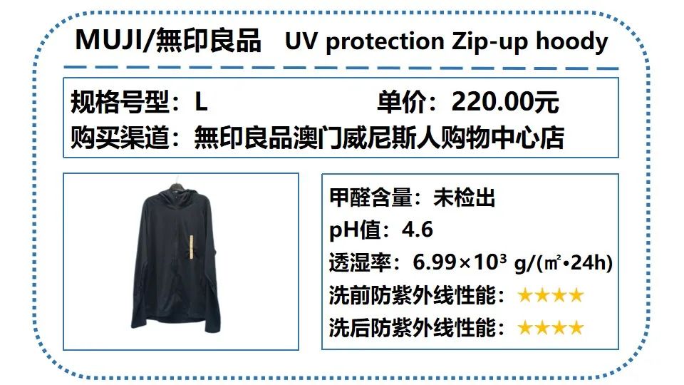 CICICURE(網(wǎng)易嚴選)、哥倫比亞、探路者品牌樣品洗前、洗后的UPF值大于400,且T(UVA)AV小于5%,表現(xiàn)優(yōu)秀。