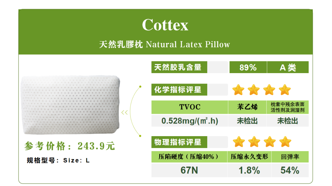 備注:乳膠枕的軟硬度、舒適度與個人的生活習慣、頭部重量、肩寬、頸椎健康狀況等有關,建議消費者親自試用后按需選擇,以上指標測試結果僅供參考。