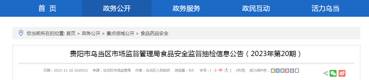中國質(zhì)量新聞網(wǎng)訊 近日,貴陽市烏當(dāng)區(qū)市場監(jiān)督管理局發(fā)布2023年第20期食品安全監(jiān)督抽檢信息。為確保對轄區(qū)養(yǎng)老機構(gòu)、醫(yī)療機構(gòu)、企事業(yè)單位食堂食品安全監(jiān)管到位,烏當(dāng)區(qū)市場監(jiān)督管理局根據(jù)10月份的抽檢計劃及“你點我檢”活動收集的信息,對轄區(qū)內(nèi)流通環(huán)節(jié)和單位食堂銷售和使用的普通食品展開抽檢。