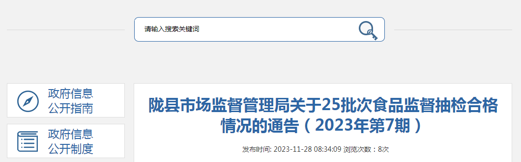 近期,隴縣市場監(jiān)督管理局組織抽檢食品26批次,其中食用農(nóng)產(chǎn)品18批次,餐飲具8批次,合格25批次,不合格1批次。現(xiàn)將25批次合格樣品具體情況通告如下:
