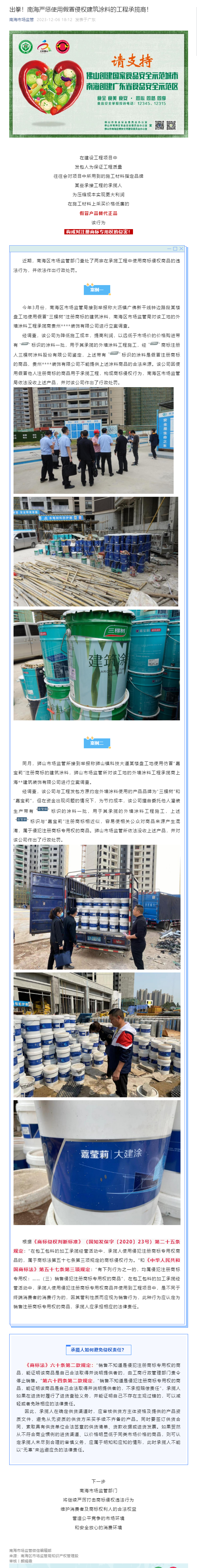 出拳!南海嚴(yán)懲使用假冒侵權(quán)建筑涂料的工程承攬商!
