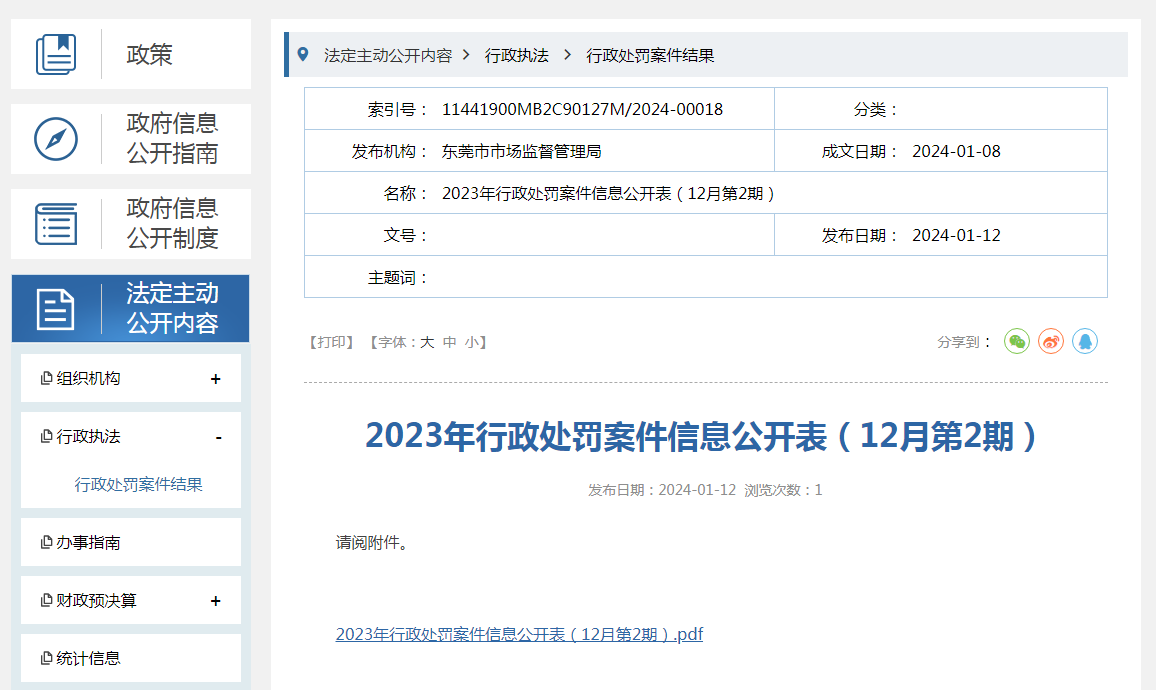 2023年行政處罰案件信息公開表(12月第2期)