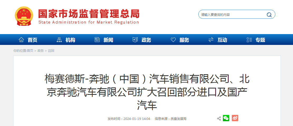 本次召回屬于2021年12月8日發(fā)布的《梅賽德斯-奔馳(中國(guó))汽車(chē)銷(xiāo)售有限公司、北京奔馳汽車(chē)有限公司召回部分進(jìn)口和國(guó)產(chǎn)奔馳汽車(chē)》召回活動(dòng)的擴(kuò)大召回。