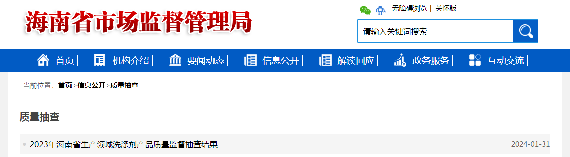 2023年,海南省市場監督管理局對全省生產領域的洗滌劑產品進行了省級監督抽查,本次抽查產品10批次。經檢驗,檢驗結果均合格。