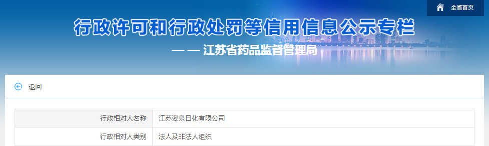 行政相對人名稱 | 江蘇姿泉日化有限公司 |
