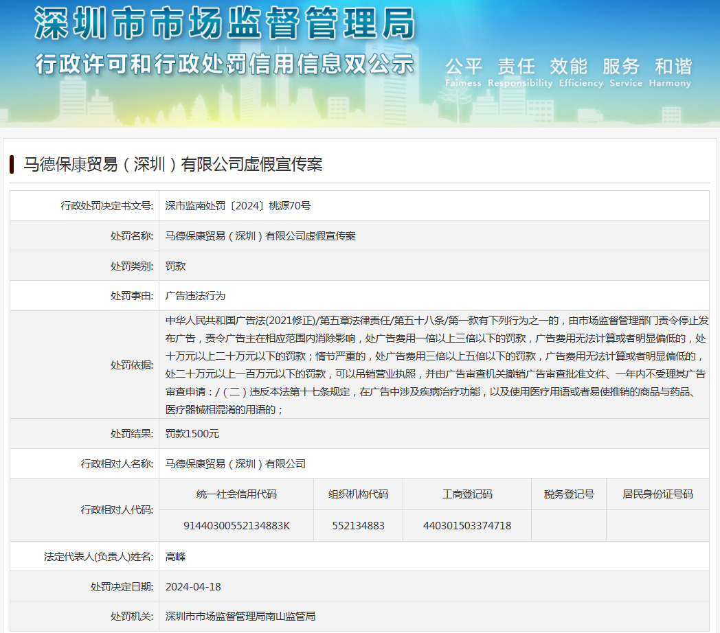 馬德保康貿易(深圳)有限公司虛假宣傳案
