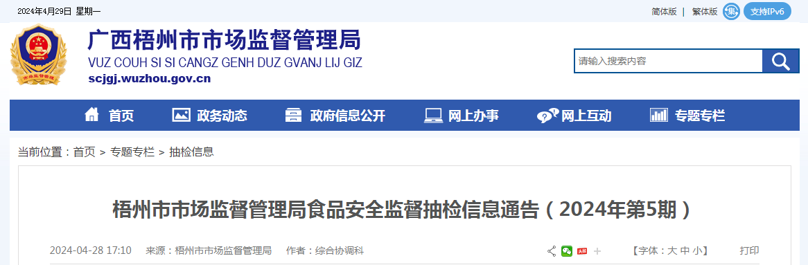 梧州市市場監(jiān)督管理局食品安全監(jiān)督抽檢信息通告(2024年第5期)