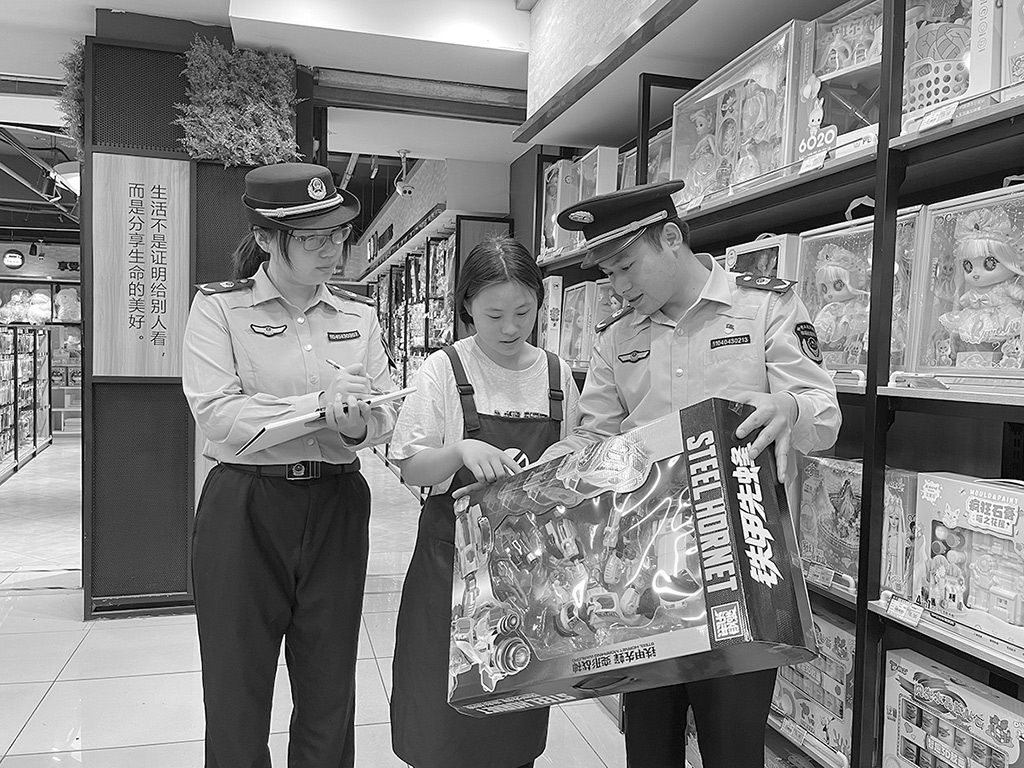 圖為執法人員在一家超市檢查兒童玩具。孫建新 許昱鳴 文/攝