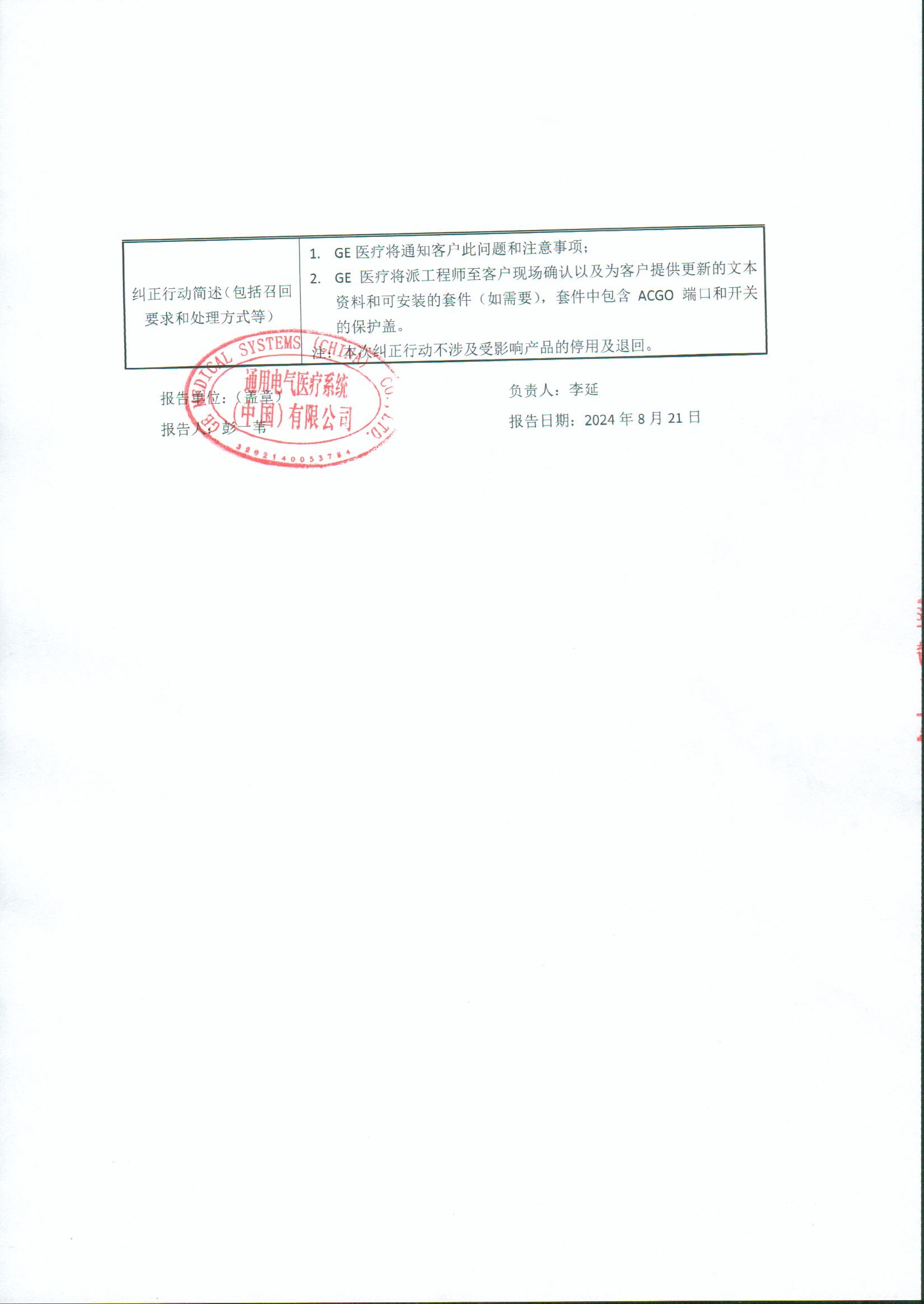 通用電氣醫療系統(中國)有限公司報告,由于患者呼吸回路被用戶錯誤地連接到輔助共用氣體出口(ACGO)端口,引起呼吸系統壓力增加,可能導致患者受傷,該企業對其生產的麻醉機主動召回。召回級別為二級。涉及產品的型號、規格及批次等詳細信息見《醫療器械召回事件報告表》