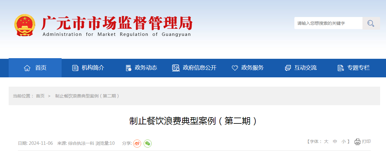 二、廣元市昭化區市場監督管理局查處昭化區某飯店未主動對消費者進行防止食品浪費提示提醒案