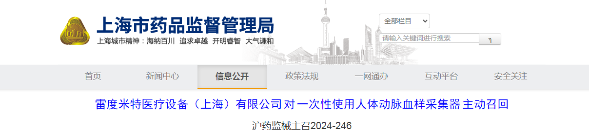 雷度米特醫(yī)療設(shè)備(上海)有限公司對一次性使用人體動脈血樣采集器主動召回