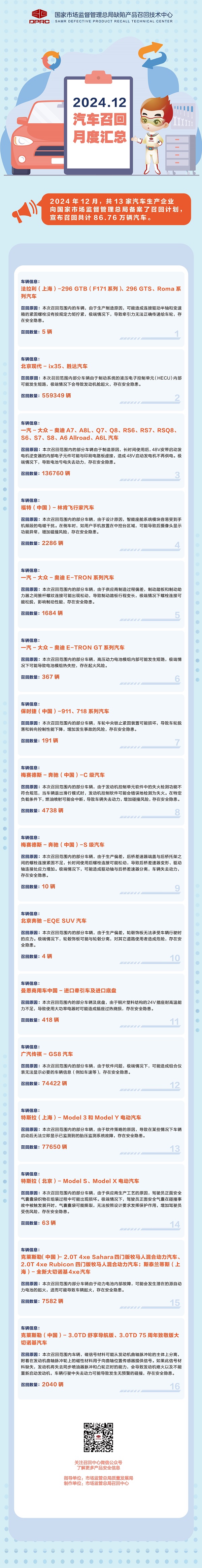 2024年12月汽車召回月度匯總