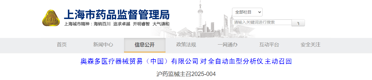 奧森多醫療器械貿易(中國)有限公司對全自動血型分析儀主動召回