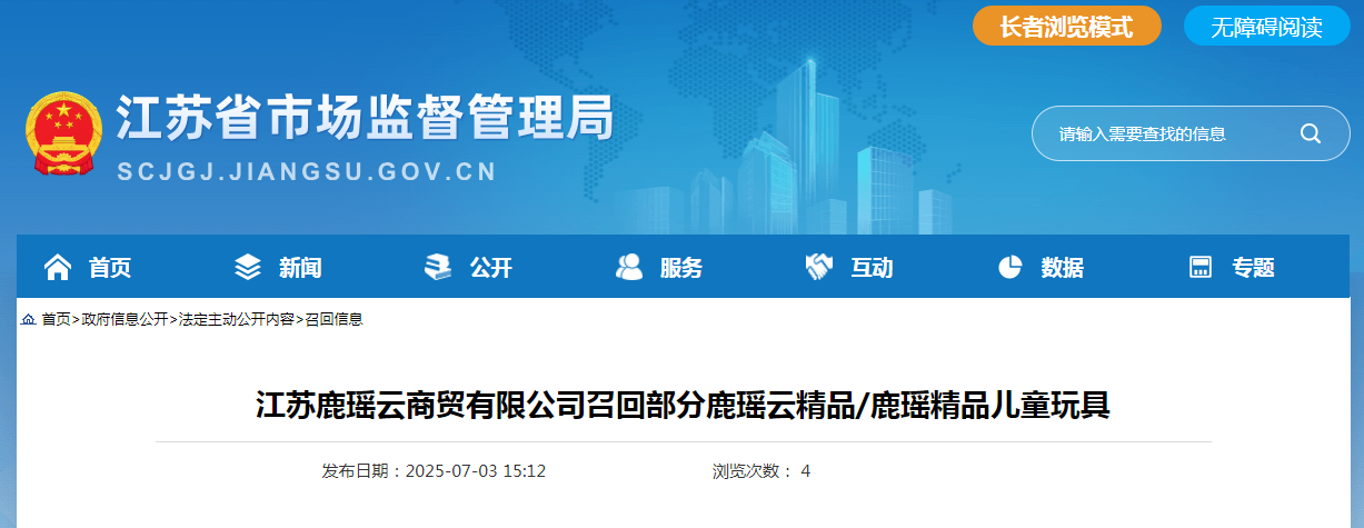 中國質量新聞網訊 據江蘇省市場監管局網站消息,日前,江蘇鹿瑤云商貿有限公司按照《消費品召回管理暫行規定》《江蘇省缺陷消費品召回管理辦法》的要求,主動向江蘇省市場監督管理局報告了召回計劃,將自即日起,召回2024年2月20日至2024年7月7日期間制造的鹿瑤云精品/鹿瑤精品(其中3款標稱“產品:指甲貼”)兒童玩具,共涉及數量為2400件。