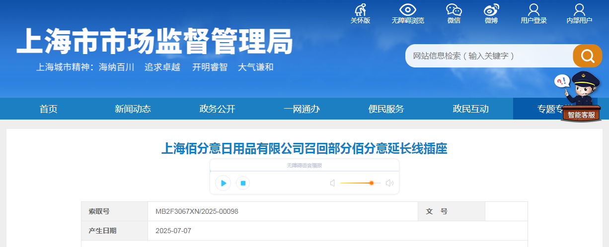 | 召回負責機構 | 上海佰分意日用品有限公司 | |||