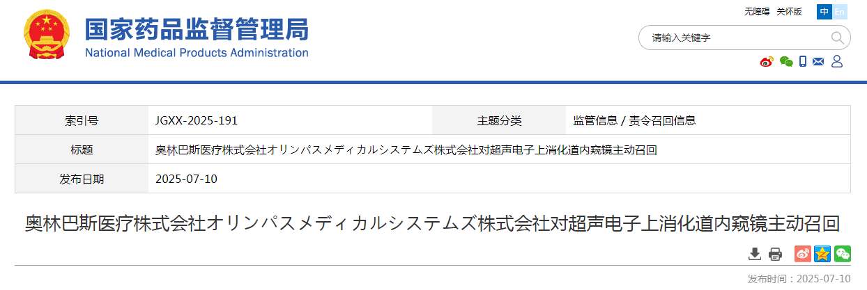 奧林巴斯貿易(上海)有限公司報告,由于部分批次超聲電子上消化道內鏡附件包裝內錯誤裝入其他產品,生產商奧林巴斯醫(yī)療株式會社オリンパスメディカルシステムズ株式會社對其生產的超聲電子上消化道內窺鏡(國械注進20163063147)主動召回。召回級別為三級召回。本次召回涉及的產品未進口至中國,具體型號、規(guī)格及批次等詳細信息見《醫(yī)療器械召回事件報告表》。