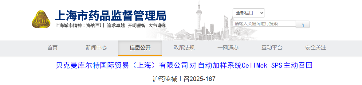 貝克曼庫爾特國際貿易(上海)有限公司對自動加樣系統CellMek SPS主動召回