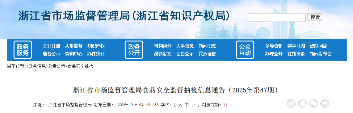 浙江省市場監督管理局食品安全監督抽檢信息通告(2025年第47期)