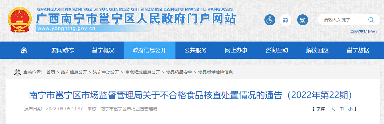 中國質(zhì)量新聞網(wǎng)訊 9月5日,南寧市邕寧區(qū)市場監(jiān)督管理局發(fā)布關(guān)于不合格食品核查處置情況的通告(2022年第22期),涉及廣西南寧麥朵朵食品有限公司邕寧分公司。