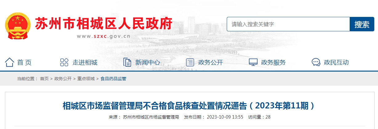 相城區市場監督管理局不合格食品核查處置情況通告(2023年第11期)