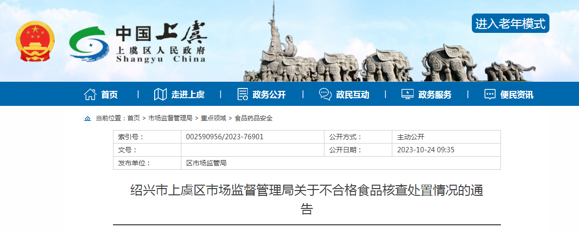 紹興市上虞區(qū)市場監(jiān)督管理局關于不合格食品核查處置情況的通告
