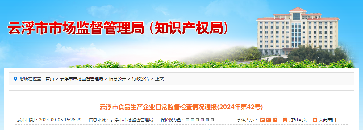 云浮市食品生產企業日常監督檢查情況通報(2024年第42號)