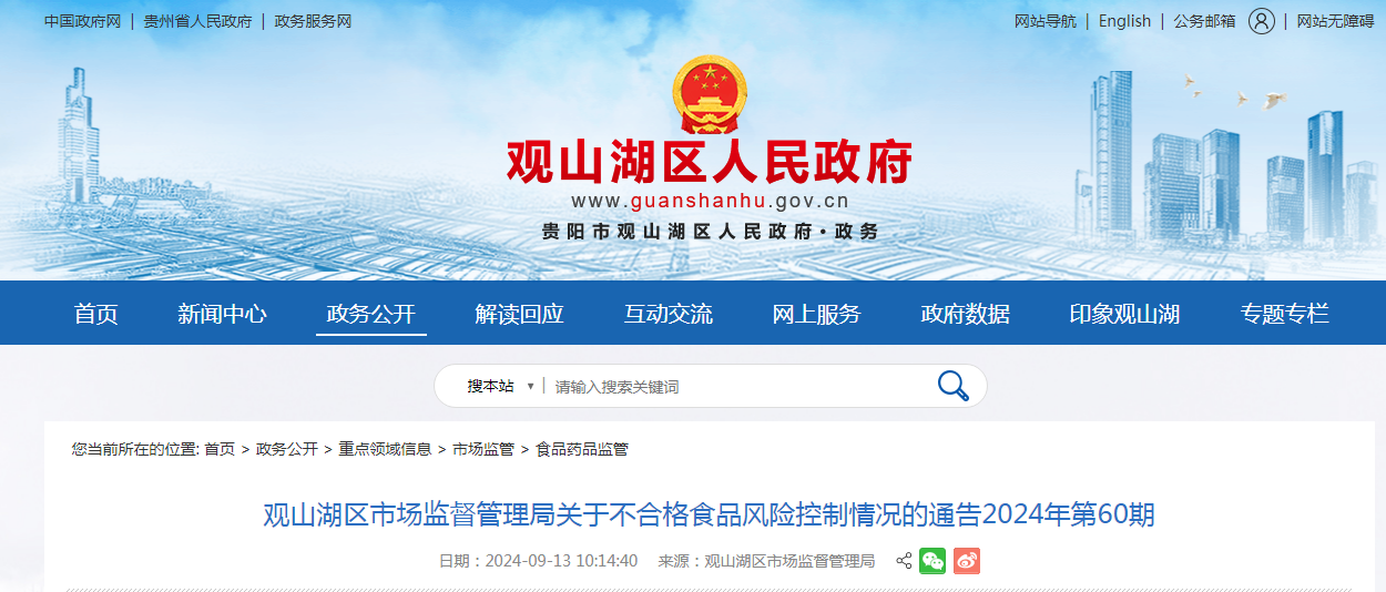 觀山湖區市場監督管理局關于不合格食品風險控制情況的通告2024年第60期