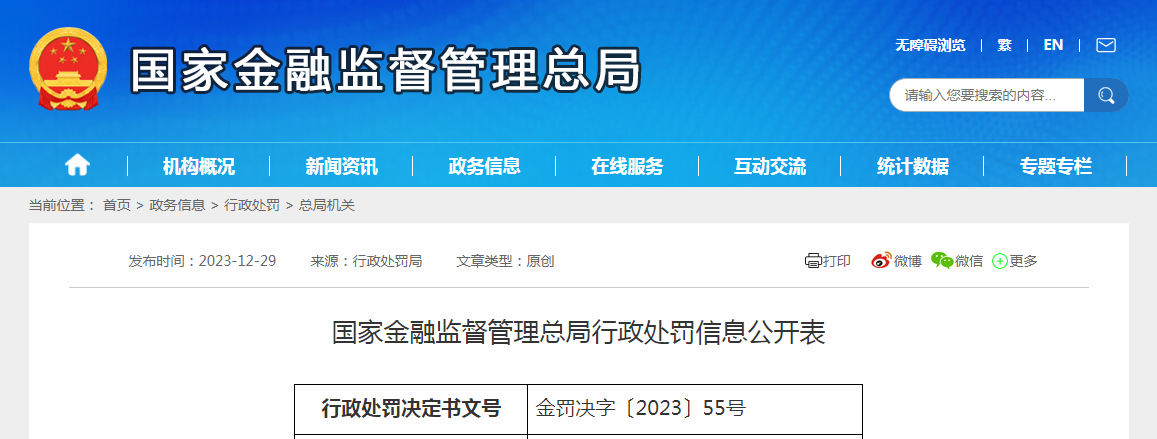 國家金融監(jiān)督管理總局行政處罰信息公開表