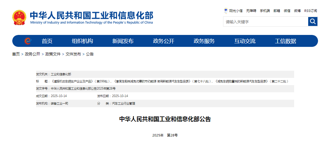根據《中華人民共和國行政許可法》、《國務院對確需保留的行政審批項目設定行政許可的決定》、《財政部 稅務總局 工業和信息化部 交通運輸部關于節能 新能源車船享受車船稅優惠政策的通知》(財稅〔2018〕74號)、《工業和信息化部 財政部 稅務總局關于調整享受車船稅優惠的節能 新能源汽車產品技術要求的公告》(2024年第10號)、《財政部 稅務總局 工業和信息化部 科技部關于免征新能源汽車車輛購置稅的公告》(2017年第172號)、《財政部 稅務總局 工業和信息化部關于延續和優化新能源汽車車輛購置稅減免政策的公告》(2023年第10號)、《工業和信息化部 財政部 稅務總局關于調整減免車輛購置稅新能源汽車產品技術要求的公告》(2023年第32號)等有關規定,現將許可的《道路機動車輛生產企業及產品》(第399批)以及經商國家稅務總局同意的《享受車船稅減免優惠的節約能源 使用新能源汽車車型目錄》(第七十八批)、《減免車輛購置稅的新能源汽車車型目錄》(第二十二批)予以公告。